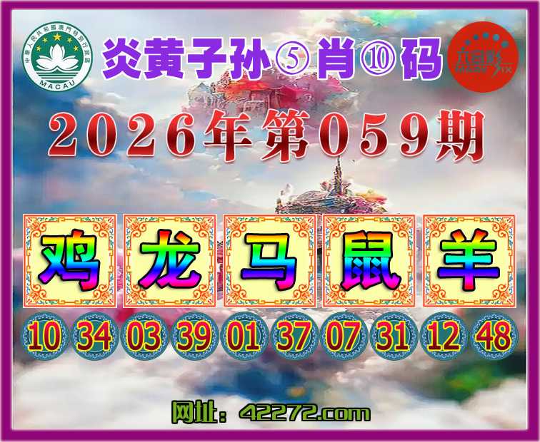 059期:《炎黄子孙》 ⑤肖⑩码【鸡龙马鼠羊】开:鸡10准
