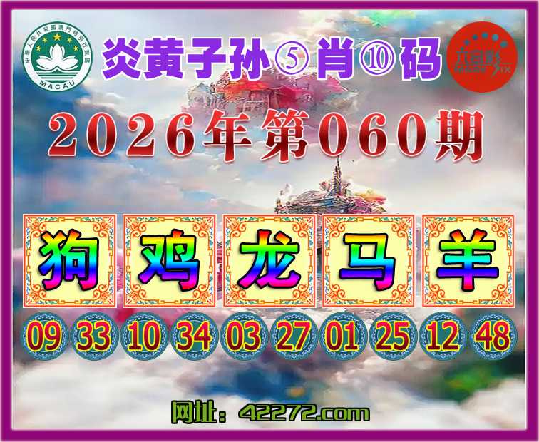 060期:《炎黄子孙》 ⑤肖⑩码【狗鸡龙马羊】开:狗09准