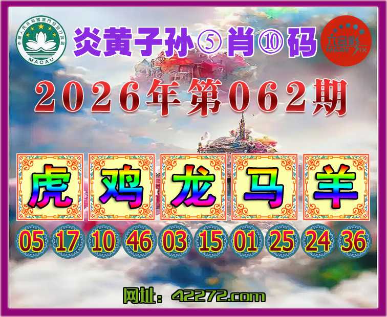 062期:《炎黄子孙》 ⑤肖⑩码【虎鸡龙马羊】开:羊24准